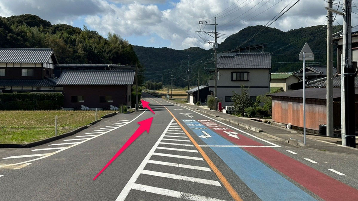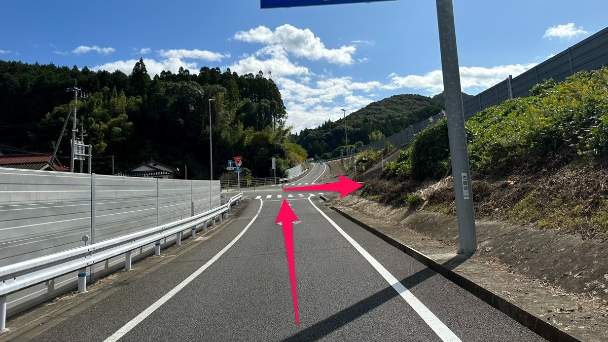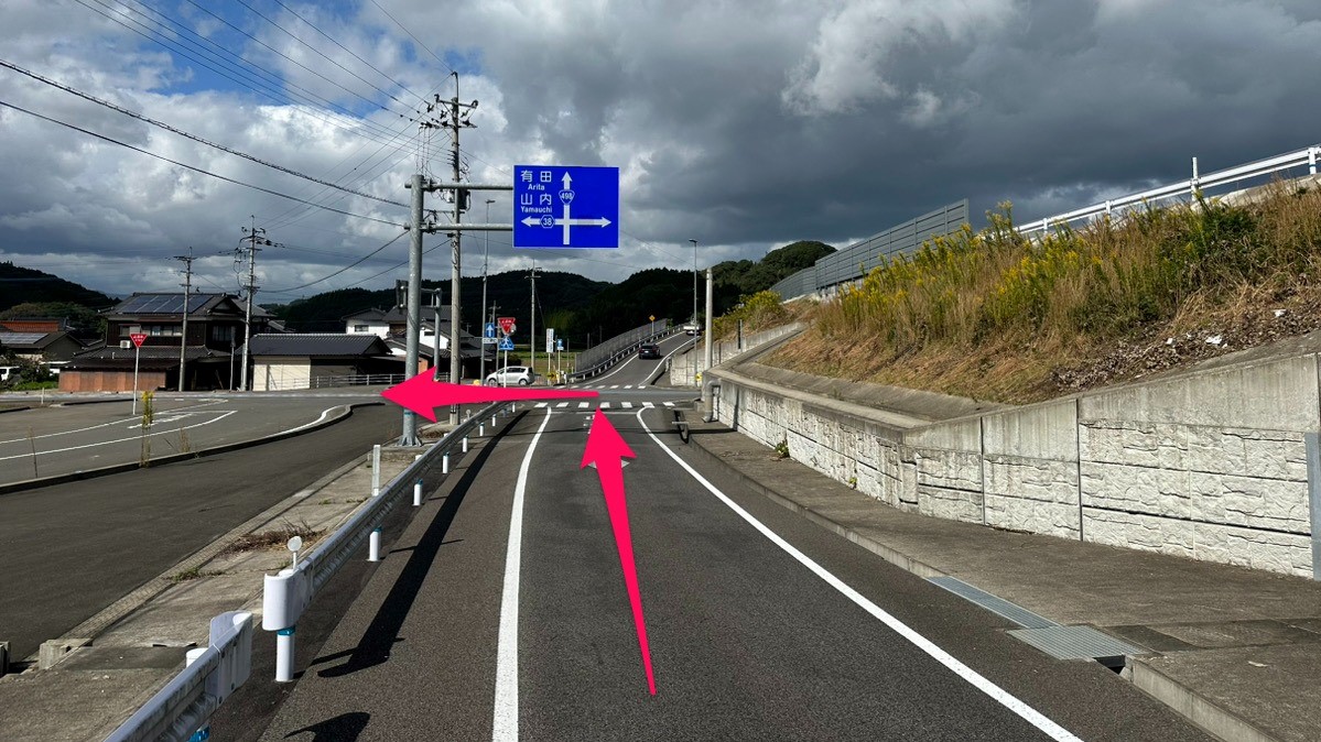 降りたところにある交差点で左折し、県道38号線を有田・山内方面へ進みます。